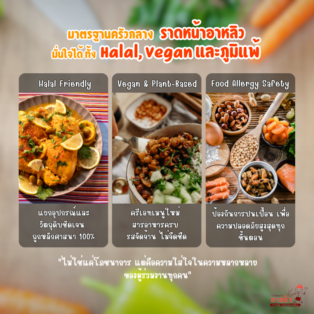 มาตรฐานครัวกลางราดหน้าอาหลิว มั่นใจได้ ทั้ง Halal, Vegan และภูมิแพ้